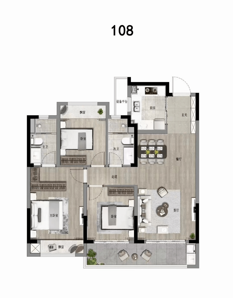 👇建面约108平3房2厅2卫👇