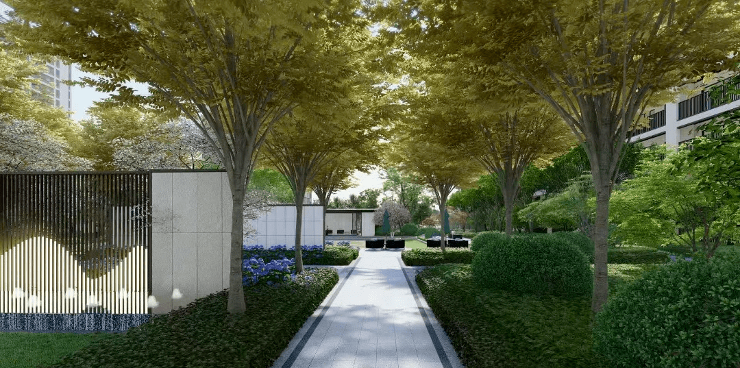小区整体绿地率约 37%,中央大组团景观围合式建筑布局,坡地式景观,多种高档树植主题式园林配备全龄乐活空间打造公园式花园小区。