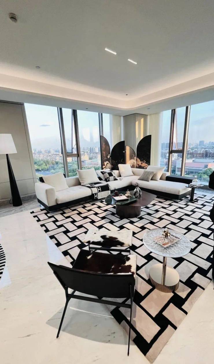 这是为美术生打造的270度环幕江景大平层,高楼层赋予的辽阔视野,江景成为空间的天然背景。
