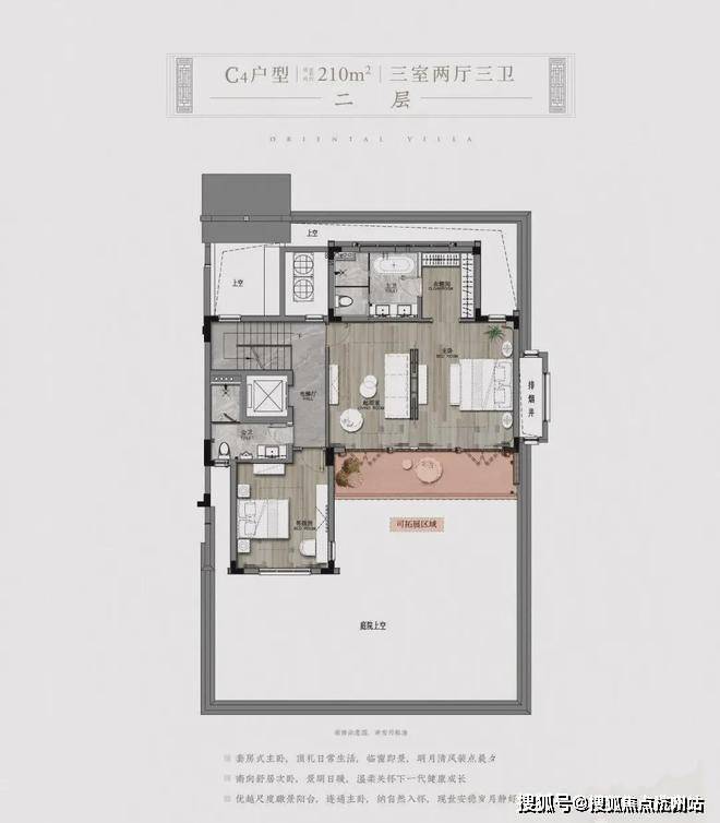 比如它210㎡以上就做到了三开间朝南,部分边套花园甚至能到400-500㎡。