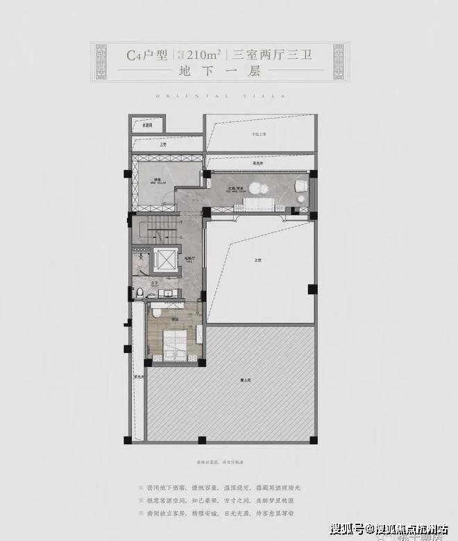在建筑空间设计上,富春御园实现了传统院墅的现代革新。项目采用两层地面+地下室的创新布局,以170-320㎡的灵动尺度,打造出户户带庭院的中式合院。建面约320㎡的隐世合院以江南古镇为原型,约一亩地的家庭院落内亭轩错落、假山流水,目之所及尺度奢阔;而210㎡舒居合院则以约12m的南向开间,升级了人居体验感。这种既保留东方隐逸情怀,又融入西方享乐主义的设计哲学,使富春御园成为当代名仕的"第一居所"
