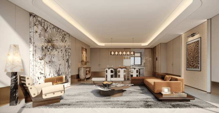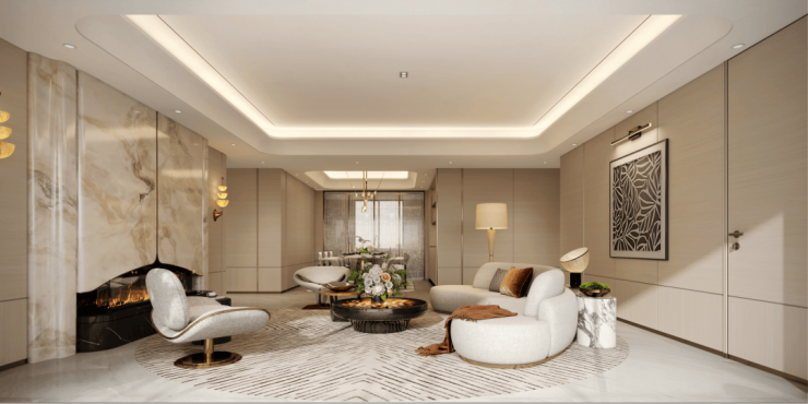松川境不仅以远超传统大平层的功能布局,诠释了奥体芯真正的「豪宅生活」。它的室内精装,更是「吊足胃口」。