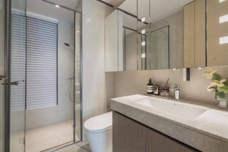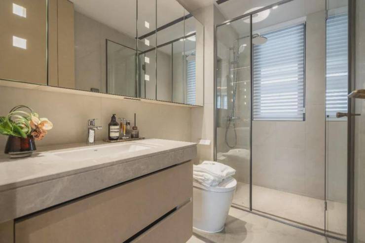 项目建筑设计邀请了九米建筑设计院量身定制,立面风格采用经典锦庐系公建化立面,四面铝板搭配大面积玻璃,封包阳台,整体精致通透,底层以浅色天然石材为主,额外做了圆弧细节,尽显优雅格调。