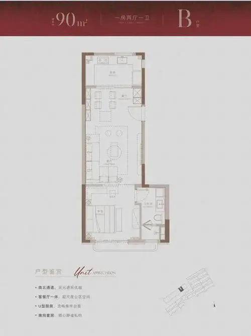 90平1房:设计更像酒店套间,南北纵深长,后期可改2房。总价1059-1200万。