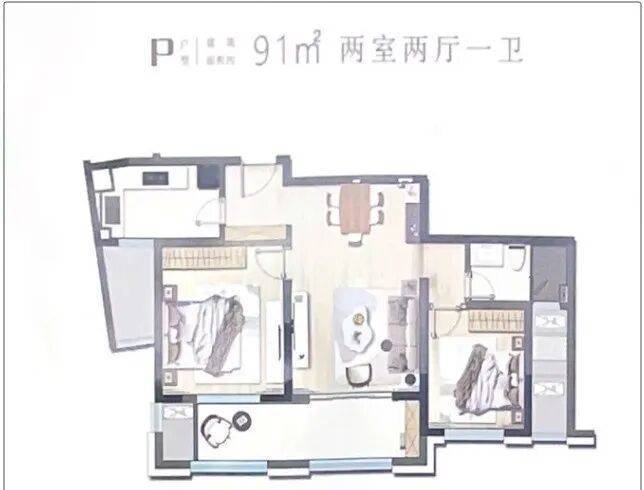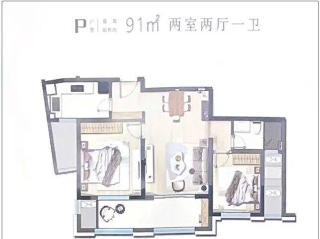 但也有特别之处,比如建面约91㎡户型厨房可以改造,扩大使用旁边的不规则设备平台;