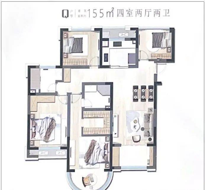 建面约91㎡户型厨房可拓宽空间实景建面约136㎡户型入户后有独立的玄关空间,可供收纳杂物;建面约155㎡户型主卧不仅能设置独立的卫生间,还有独立的衣帽间以及半弧形的宫廷式落地窗,阳光奢享感满满!