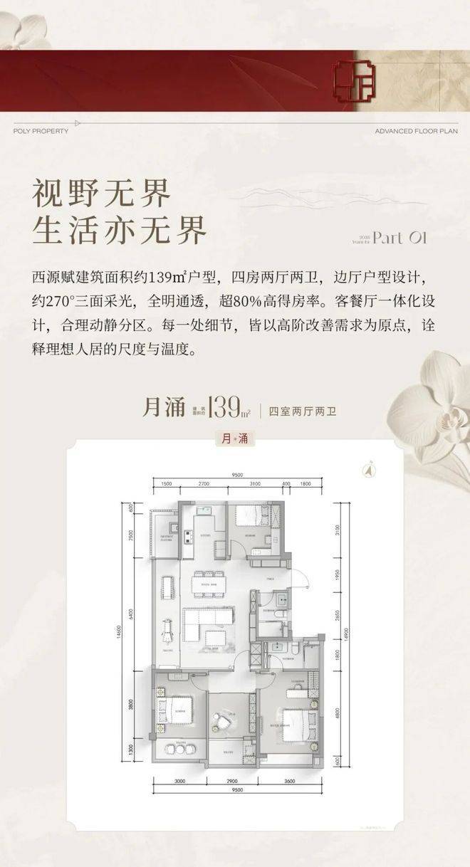 139㎡ 4室2厅2卫:奢阔三阳台配置,分别满足晾晒、家政、休闲多元需求;LDK与封闭式阳台相连,大方厅尺度优越,社交互动无界限;南向三房+北向大面宽次卧,全明通透无暗角,居住舒适度高;空间布局合理,完美适配三代同堂“一步到位”的改善需求。