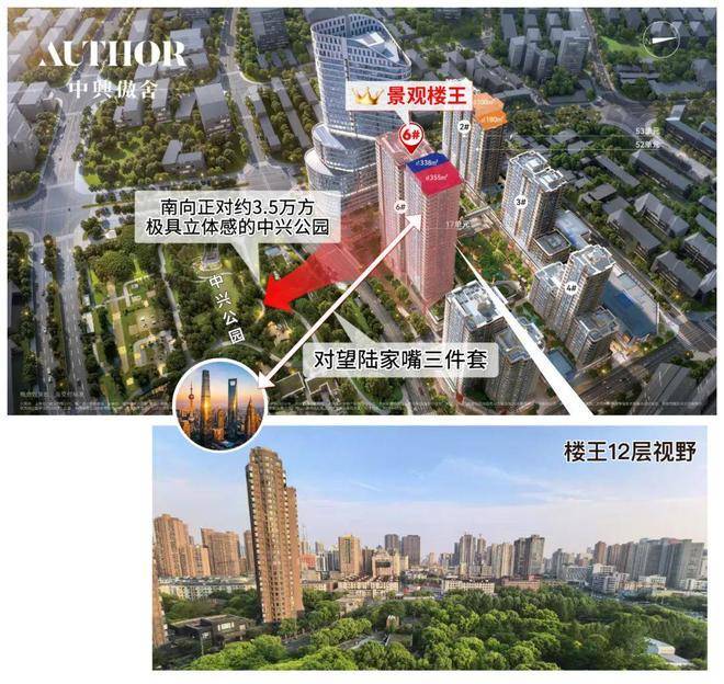 在众多豪宅中,万科中興傲舍楼王是罕有的南向瞰公园的项目。项目外瞰约3.5万方中兴公园,内揽约6000㎡高线公园,绿意盎然,四季景致各不相同,为业主提供了一片城市中的天然绿洲。与此同时,楼王还能对望陆家嘴三件套,繁华都市的天际线尽收眼底。