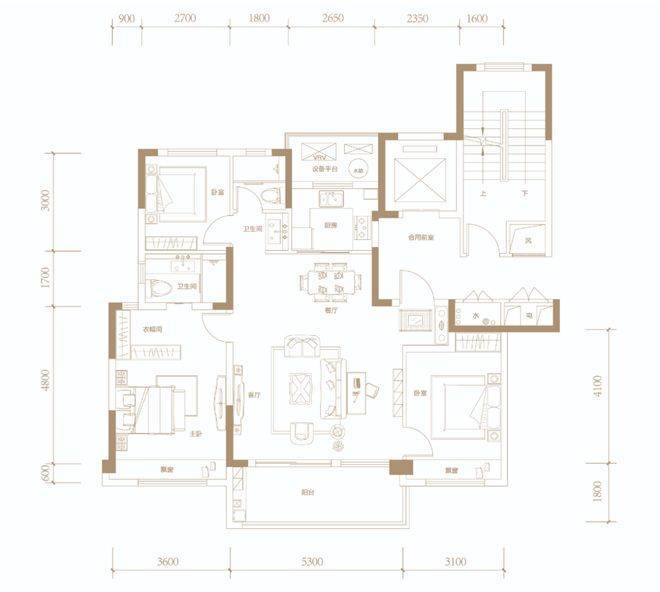 主卧更是达到了约3.6米开间,比肩寻常140㎡级面积段户型。