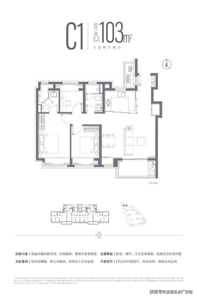 1、全部南向大面宽设计,保证最为出众的采光和视野需求;