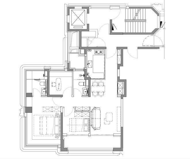 我们以边套的建面约108㎡三房两厅两卫来看。