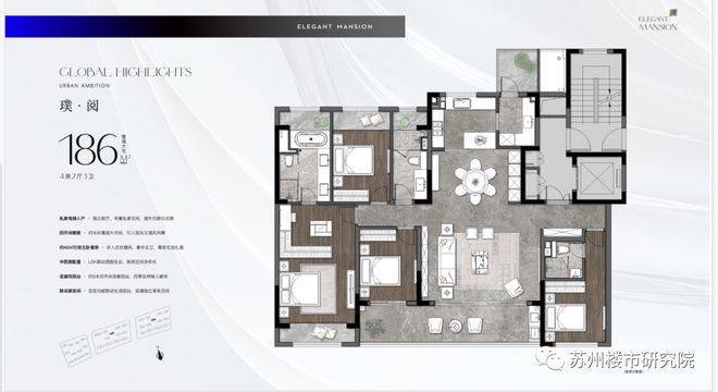 186平:1.约55平LDK厅联动阳台,私家电梯入户,分享式中西双厨空间,独立岛台