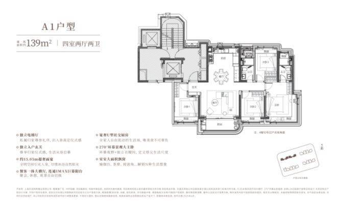 建面约139㎡稀贵4房,总价约1000万级起