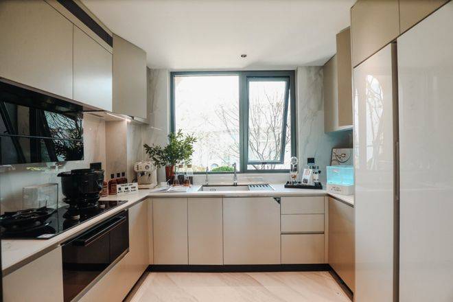 中环铂樾通过选择大品牌为业主带来高配精装。厨房采用方太七件套,都是高端系列,贴心的设计了集成烹饪中心(烟灶联动、制冷空调、蒸烤同烹)、集成净洗中心(水槽与洗碗机一体化),除此之外,项目还配备了博世冰箱、铂浪高的龙头和水槽,缔造舒适日常。