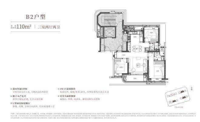 建面约110㎡宽厅3房,总价约700万级起