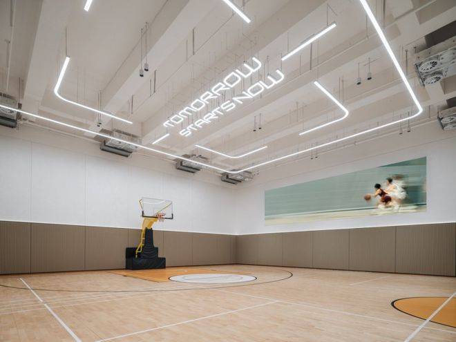7.1米的优越层高,地面采用NBA赛级的地板用料,配有超大标准计分电子屏,对标顶级球场设计,足以俘获篮球爱好者的心。