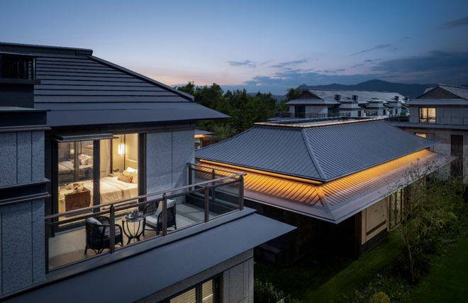 建筑之魂,在于形制与气韵。合院萃取传统庑殿顶飞檐弧度,以航空铝材转译“如鸟斯革,如翚斯飞”的古典神韵。外立面创新采用一体成型仿石铝板,复刻天然石材质感,确保历久弥新的同时,让每一栋建筑都成为承载东方美学的当代地标。