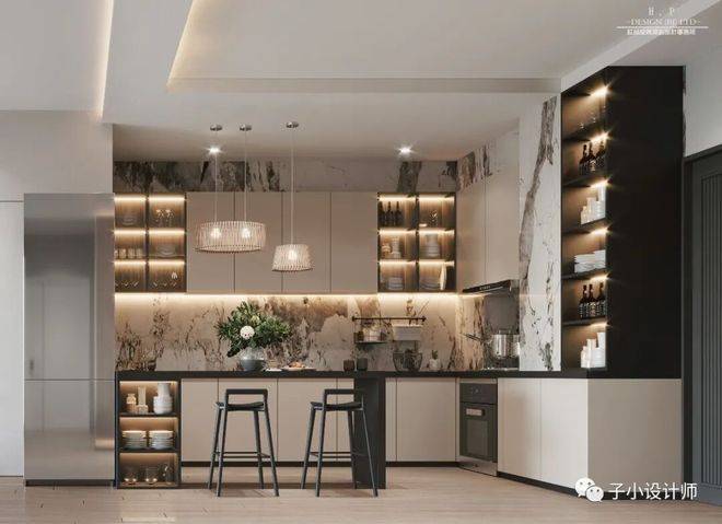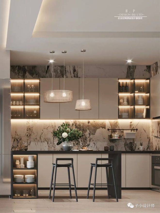3.开放式厨房与岛台结合,厨房空间更大更美观。