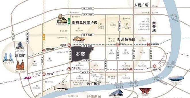 项目位于上海市徐汇区斜土路1275弄8号,内环内打浦桥商圈内;东临瑞金南路,西临大木桥路,北临肇嘉浜路,南邻斜土路,毗邻黄浦区(卢湾);新天地、徐家汇、打浦桥、淮海路、南京西路五大商圈环绕,更有步行1公里至充满中西艺术气息的田子坊,在漫步时尚商业前沿的同时熏染文化艺术气息。