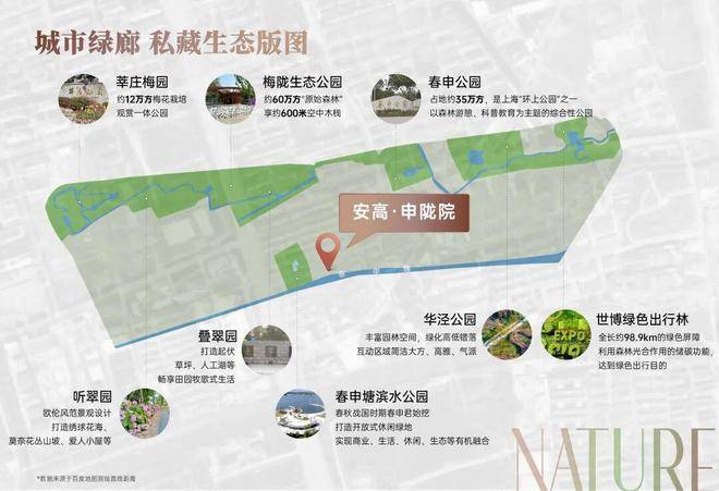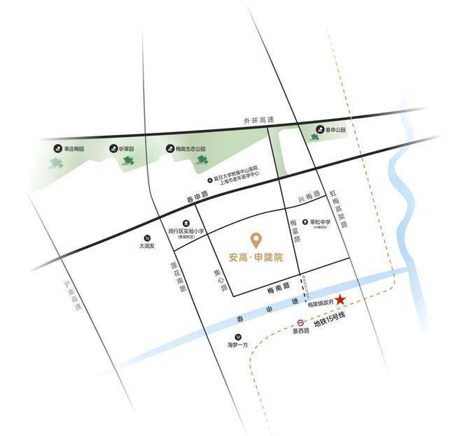 对于改善客户来说,绿色生态配套也非常吸引人。梅陇生态公园、莘庄梅园等,给安高申陇院业主带来静谧的生活环境。