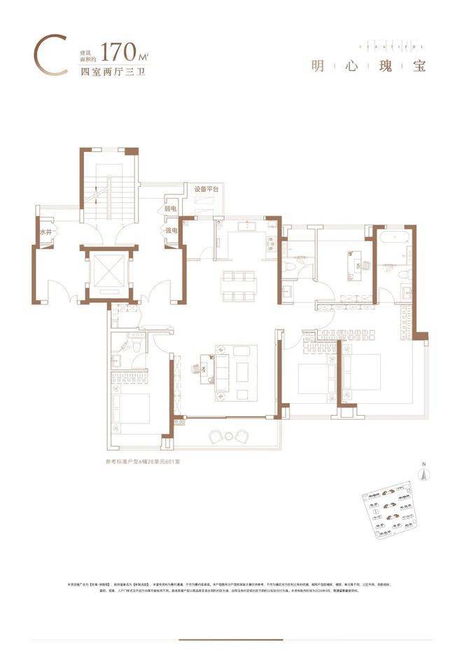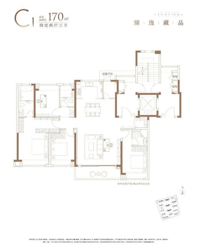 3)建面约170㎡四房两厅三卫——尺度感的王者