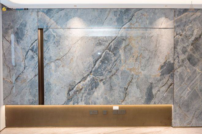 客厅巨幅背景墙,大理石花纹做到了方向上的统一,这对施工品质的要求非常高。
