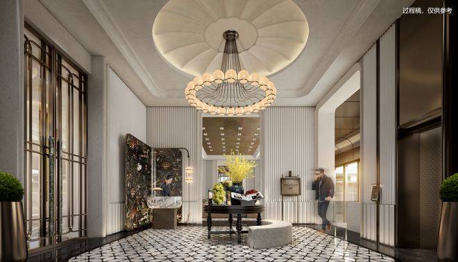 样板间进门后,映入眼帘的是陶瓷的编织纹玄关背景墙,极具质感和尊贵感。