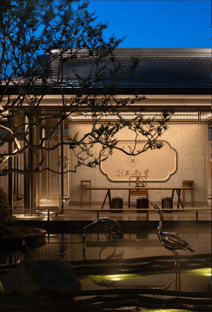 古韵流芳,今辉璀璨,灯影凝聚华彩,再续当代姑苏之梦。温婉秀丽的苏州,书香浸润千年,诗意与风雅深沉悠长。本项目的生活馆室内设计以江南文人意境为内核,从“荷”中汲取灵感,用当代语言重构东方美学内涵,倾力营造了一处游今溯古的都市秘境。漫步其中,可行可望,沉浸于穿越古今的雅致与朦胧。