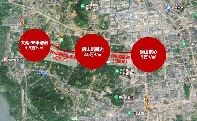 未来绿洲周边太湖大道,何山路延线快速路(在建)、苏绍S9,有轨电车13号线(规划中)(信息来源:苏州交投集团),多维交通要脉串联繁华,满足不同人群出行需求。