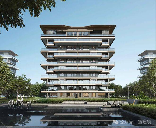 大师立面:其屋顶呈飞翼造型,转角有着如同 iPhone 般的精密弧度,尽显精奢优雅之态。