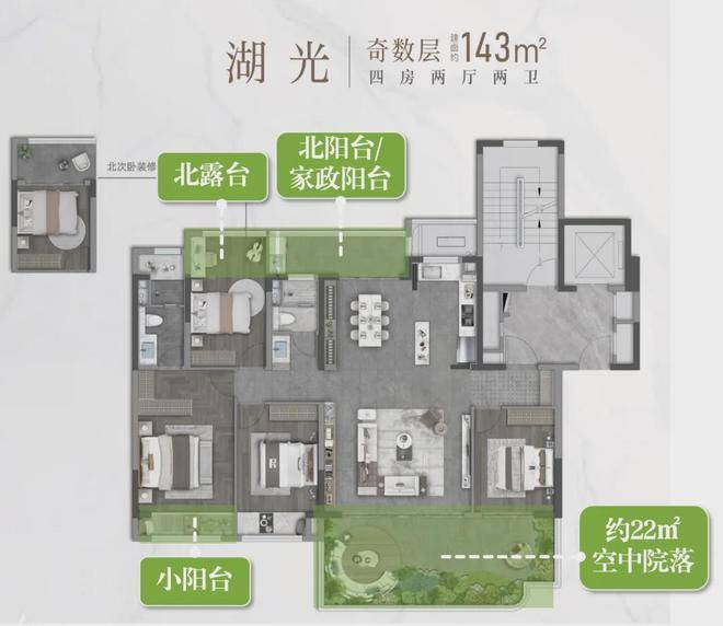 建面约143㎡奇数层户型,真正演绎了全新第四代住宅的生活奥义。南露台、北阳台、主卧还有小阳台,对生活的畅想与憧憬,是超越墅的体验,上演百余种生活方式。