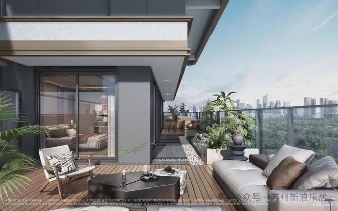 约22㎡空中江南院落,可以设计成团圆式茶亭,作为逢年过节或是闲时一家人的品茗赏景,打趣社交的场所;后院可以是运动健身。