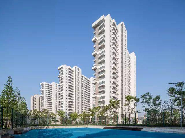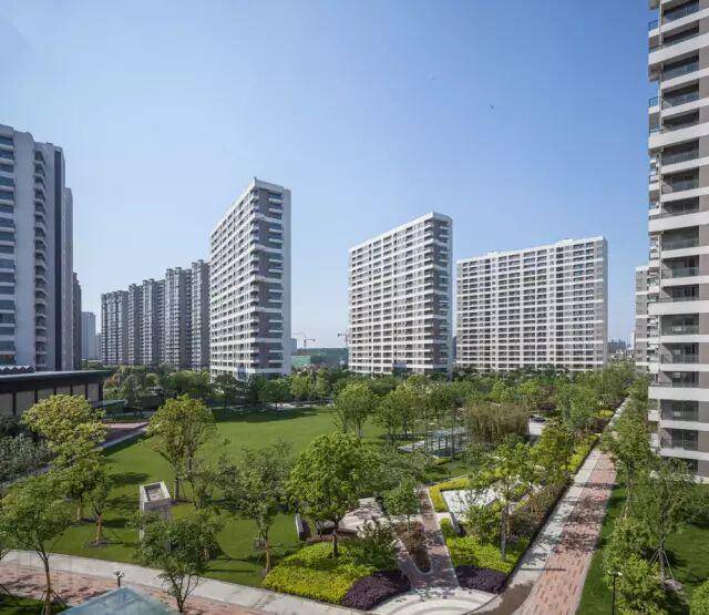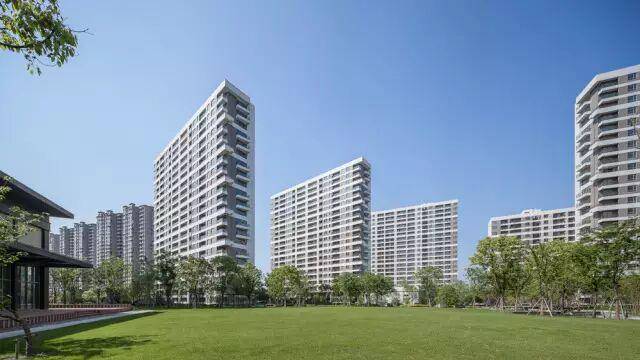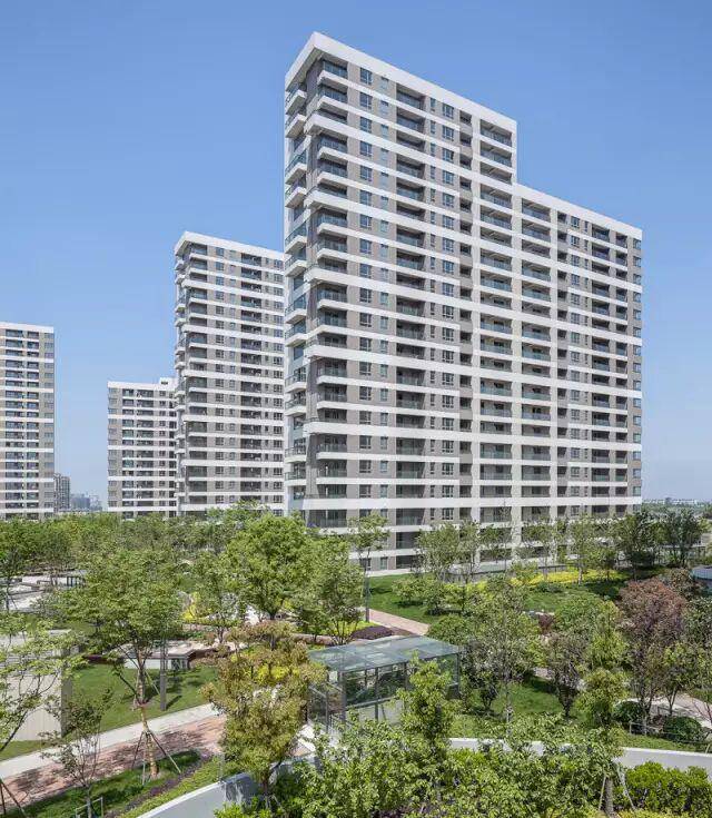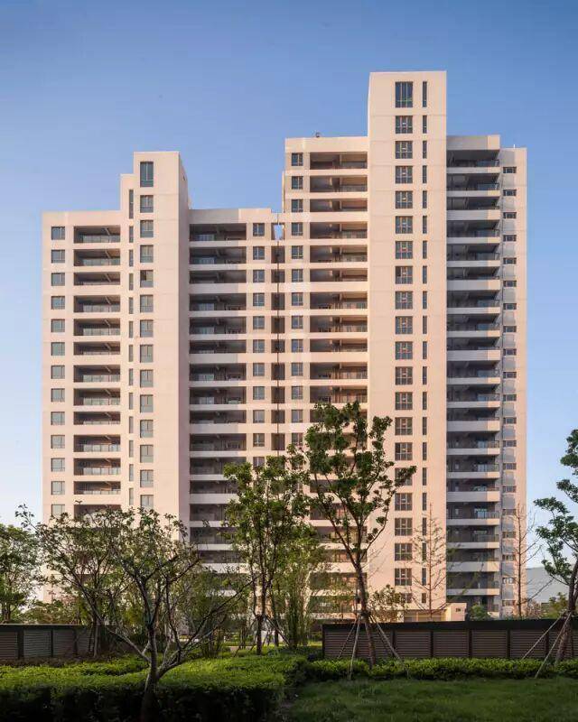 住宅为板式高层,外立面简洁大气的线条、纯净的配色方案共同诠释现代主义建筑风格,形成个性鲜明又不失细节的整体效果,展示现代时尚理想生活,为城市景观增添区域性亮点。