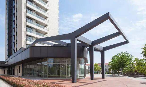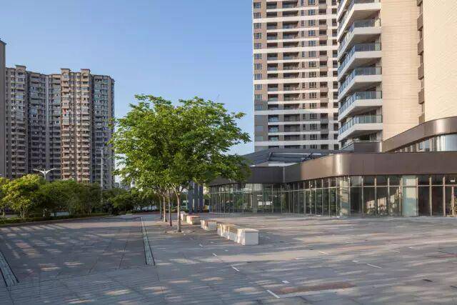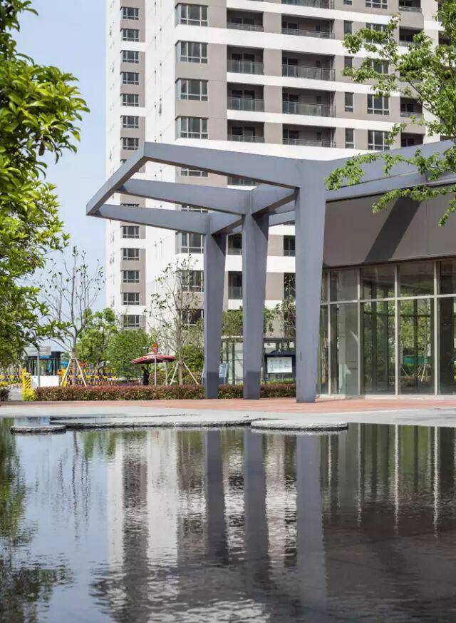项目以开放性街角广场作为起点,将居住者由公共开放空间逐渐过渡至私密的居住区内。