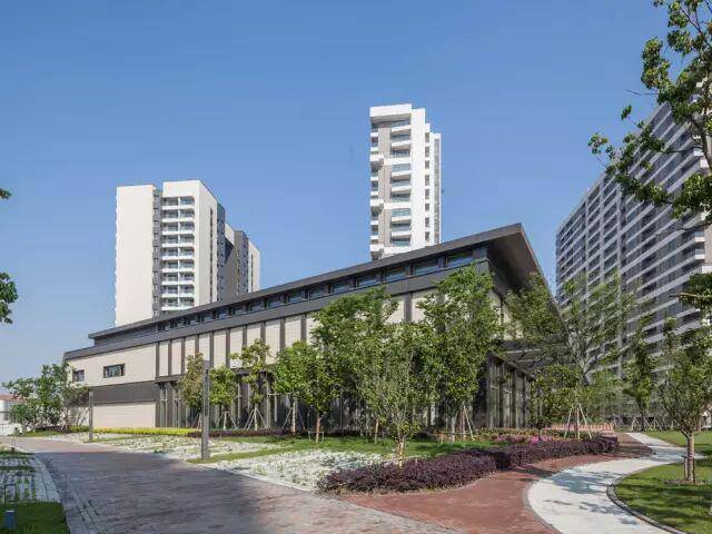 公寓大厦是理想城社区的焦点,无论是从街角广场还是社区内部,它都展现欧普企业的文化形象。