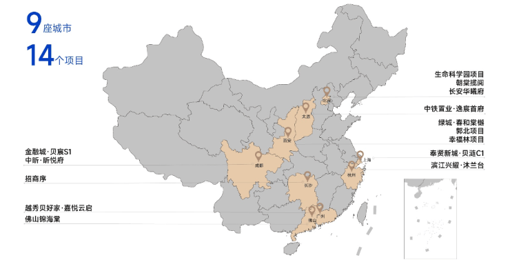 今年上半年,贝好家已经与多家头部房企展开不同程度的合作,包括招商、越秀、绿城等,9个城市14个项目,布局速度极快。