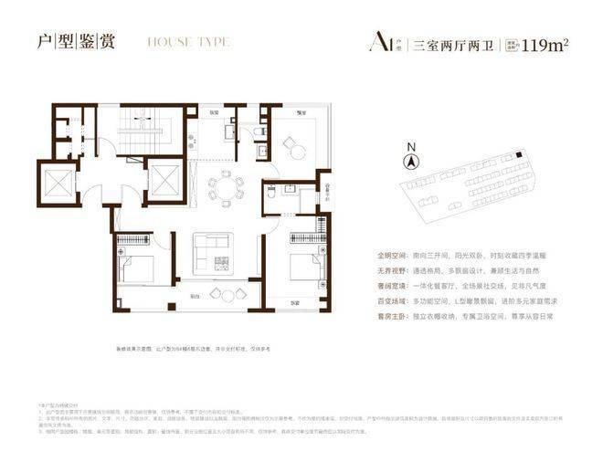 该户型在约119㎡的户型基础上做了全面的升级!实得率甚至高达约92%!三开间朝南面宽约14.4米,采光面足!三阳台+飘窗结构实得率超高!适合各类年轻家庭改善居住的奢阔户型!