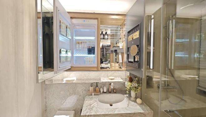 更贴心配备NTC控温美妆冰箱与镜箱,恒温储存高活性护肤品,完美契合现代女性的精致生活节奏。