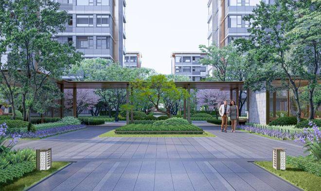小区入口为现代式门厅,尊贵大气,使社区形象界面极具归家仪式感。品质叠水、特色雕塑、精致矮墙、特选树种等设计,让归家第一步就拥有绿色好心情。