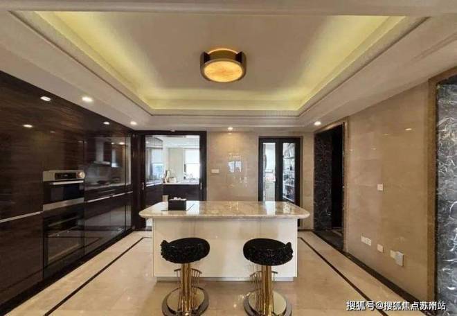 朝南开间搭配大平层露台风景,在餐厅依然可以享受露台上延伸出去的风景;岛台与封闭厨房形成了中西厨一体的格局,宽敞的空间与窗外怡人的风景,令日常烹饪也多了几分灵动意趣.