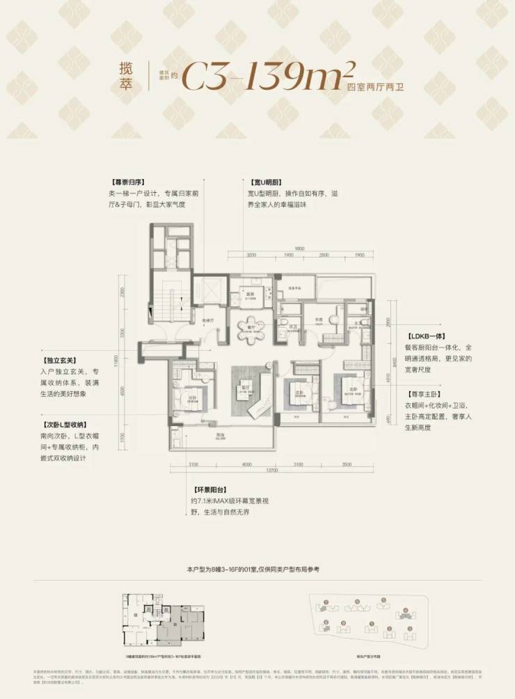 建面约139方大四房,起步单价仅约3.4695万/平;