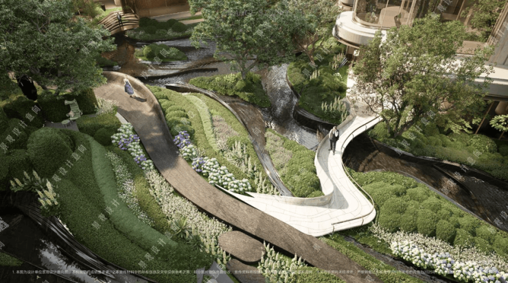 住宅组团如“浮岛花园”悬浮于城市之上,实现真正意义上的人车分流与立体绿化,营造静谧的归家动线,是城市核心地段最珍贵的自然松弛,同时基于全大户型社区营造出纯粹的社区圈层;