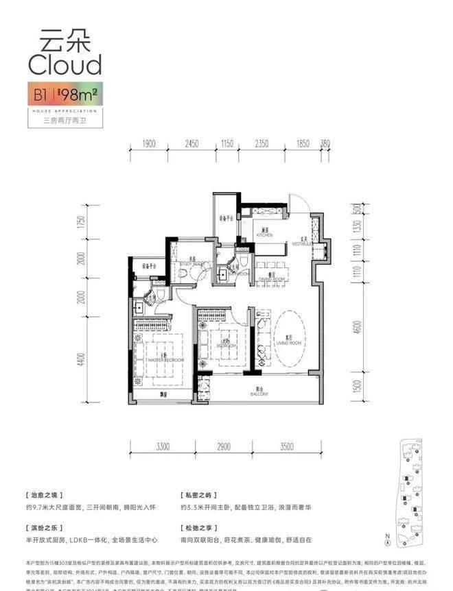滨杭滨纷城由地面都市活力层、9米街区漫游层、15米云境生活层三大立体空间组成,每个空间都有住宅、商业、公园等配置。目前亮相的是项目1期的地面都市活力层,位于最东面,距离地铁站最近,由15幢高层住宅、约10万平方米商业、邻里中心组成。其中,住宅分为南北两个组团,一共1300余套可售房源。“整个项目共有5000多套房源,不过后续住宅产品规划还没有确定。