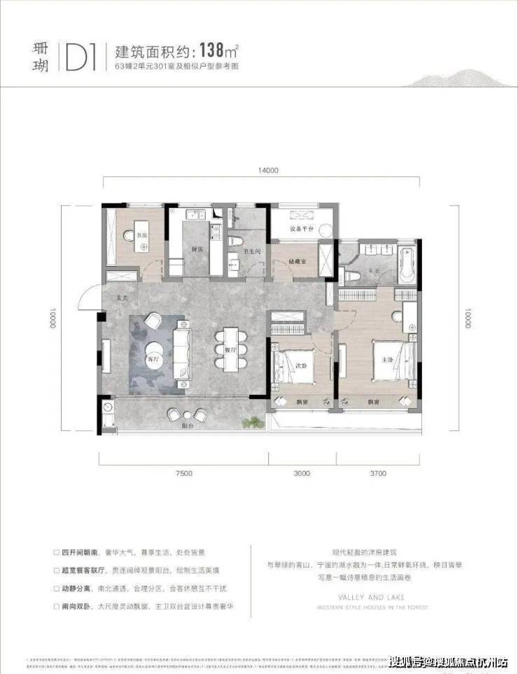 户型点评优势:双阳台设计,完美匹配湖山美景。客餐厨动线合理,观景飘窗连通了室内室外两重空间。南北通透、分区合理,尤其是储藏室的设计,十分贴心。99㎡的大两居,恰到好处地放大了各个功能区,整体看过去十分舒畅。