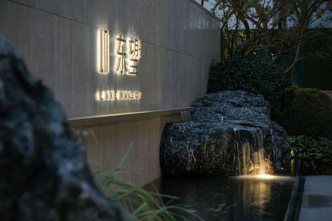 △自然的质朴与精致景墙冲击碰撞,保留黑山石的肌理,少部分进行人工平整,减少人工雕饰感,潺潺的流水更具自然、和谐的气息
