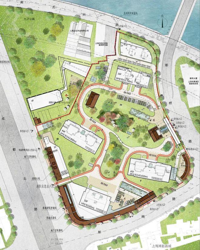 In the Suzhou River area of Huangpu District, it includes a swimming pool clubhouse, six major commercial districts surrounding it, and five railway lines.