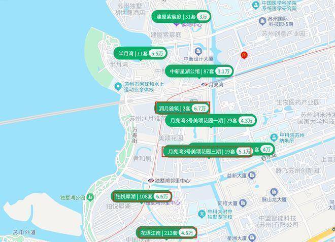 商业配套:月亮湾商业圈,独墅湖邻里中心、星月坊商业街举步可达、3公里范围内有邻瑞广场,9公里可达苏州中心…