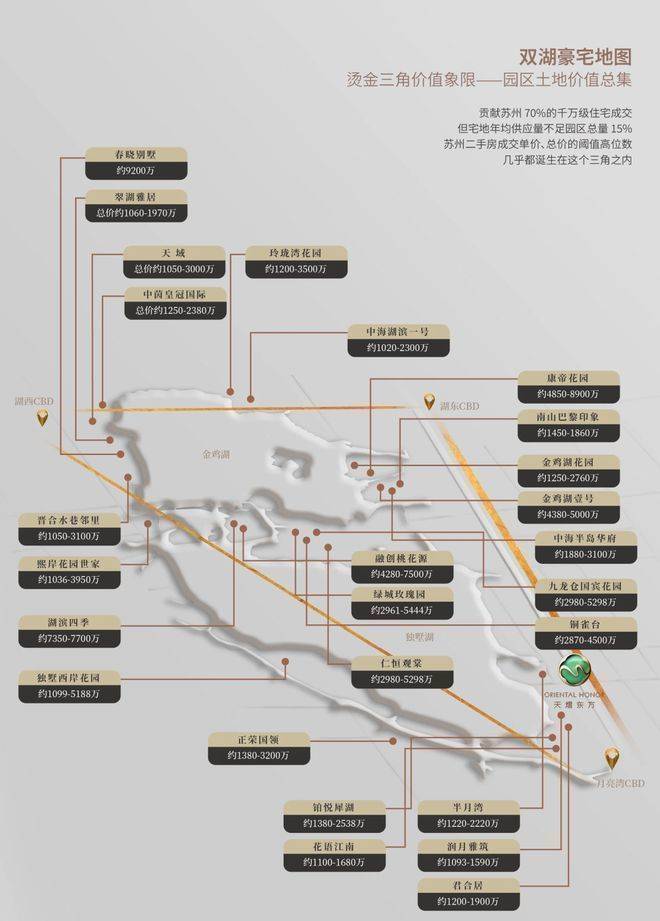 第二,苏州70%以上的千万级豪宅都在这里,地价&房价天花板也在这,买进双湖烫金三角就等于买到了优质的核心资产,同时掌握了一张通往巅峰圈层的终身入场券;