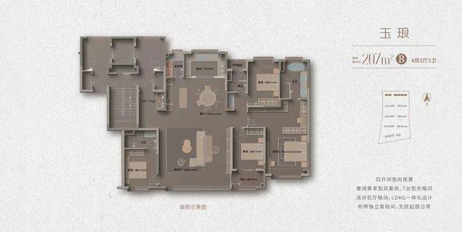 建面约207㎡,共有两种户型,但其户型整体设计思路基本相同。