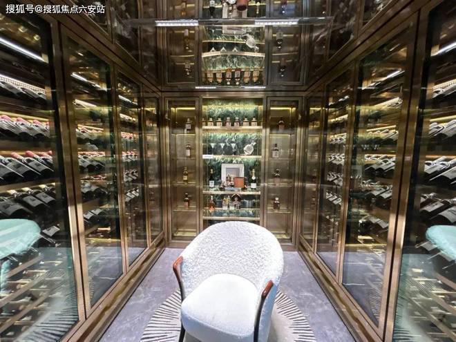 从静心凝神的茶室走几步,就到了藏酒饮酒的开放式会客空间,墙上橱柜码着主人从各处精心搜罗回来的上等佳酿。